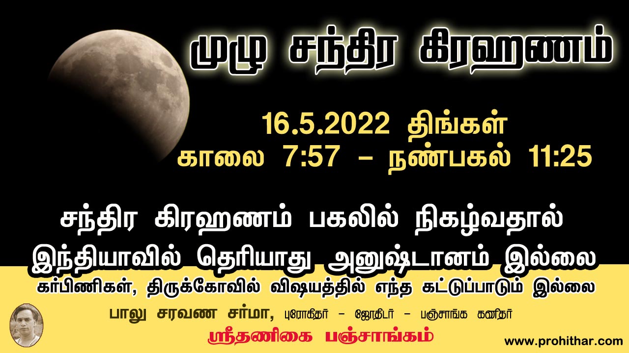 ப்லவ வருஷம் கார்திகை மாதம் பவுர்ணமி 19.11.2021 சந்திர கிரஹணம் அனுஷ்டானம் இல்லை