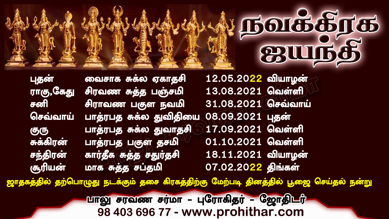 நவக்கிரக ஜயந்தி தினங்கள்