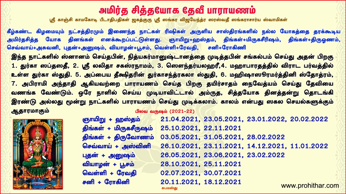 பிலவ வருஷ வருஷ அமிர்தசித்த யோகதினம்