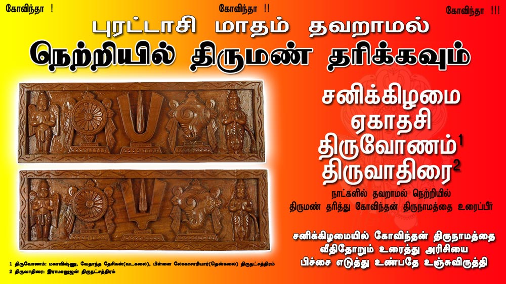புரட்டாசி சனிக்கிழமை நெற்றியில் திருமண் தரிக்கவும்