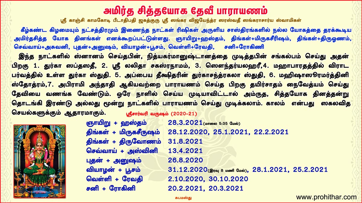 சார்வரி வருஷ அமிர்தசித்த யோகதினம்