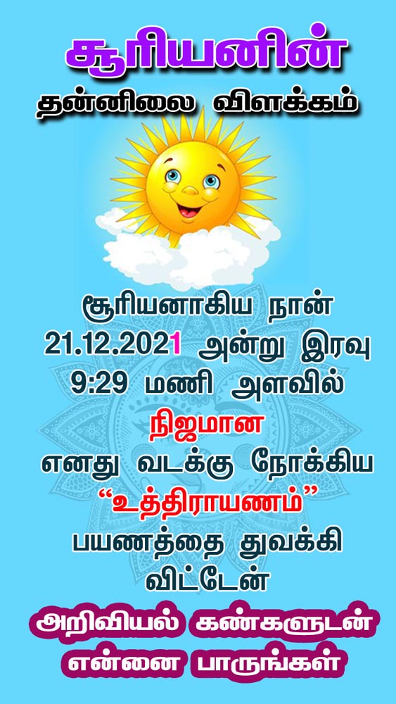 உத்திராயணம், உத்ராயனம், தைமாத பிறப்பு ஆடி மாதபிறப்பு விளக்கம் தஷிணாயனம், Sayanam Nirayanam Uthiranam (Solstice)