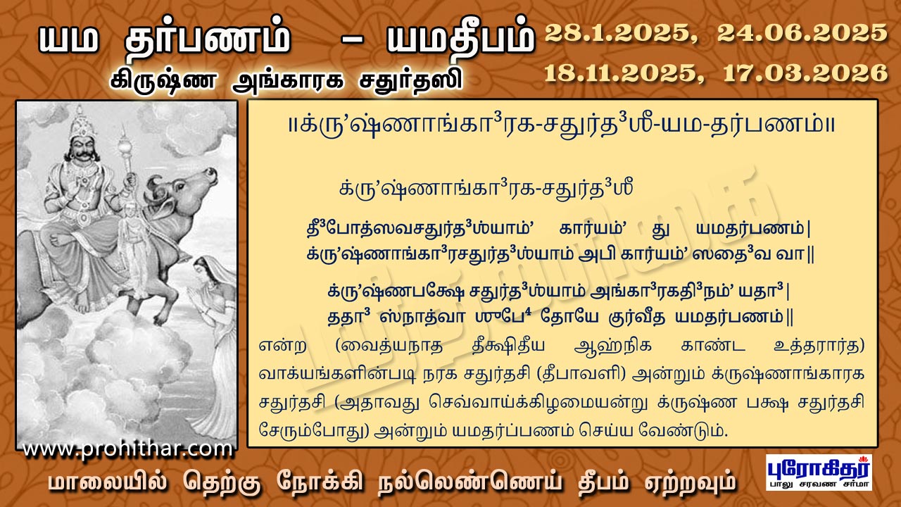 Krishna Angaraga Chathurdasi yama tharpanam yamadeepam கிருஷ்ண அங்காரக சதுர்தஸி யமதர்பணம் யமதீபம்