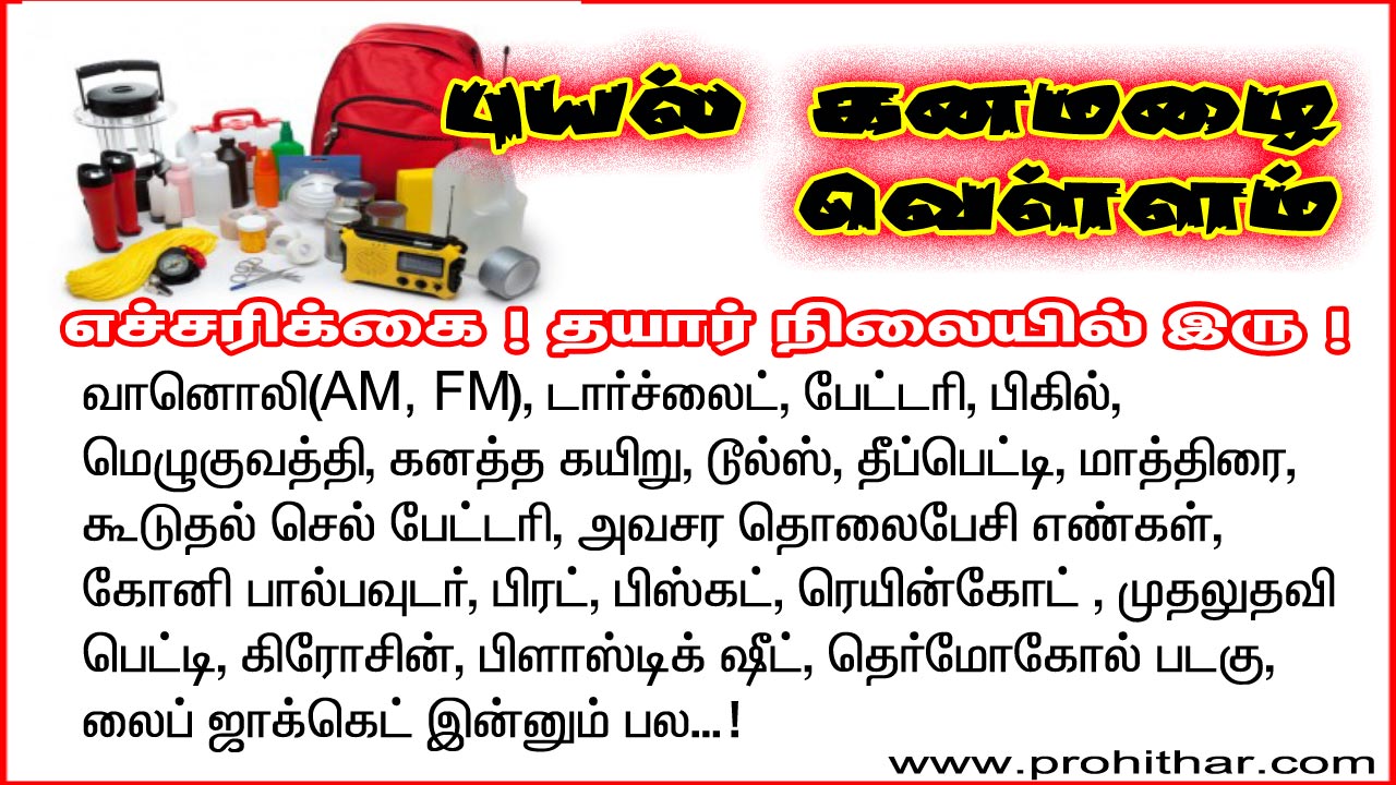 தமிழ்நாடு புயல் - வெள்ள தடுப்பு மற்றும் முன்னெச்சரிக்கை நடவடிக்கை Tamil Nadu Storm, Flood Warning, Chennai, Tambaram, Nada Flood - Emergency - RADIO & Torch LIGHT flood and disaster preparedness |