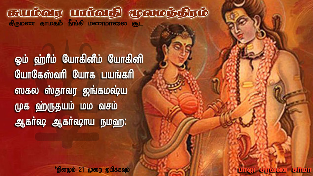 சுயம்வர பார்வதி மூலமந்திரம் மற்றும் ஸ்லோகம் |