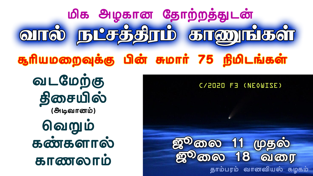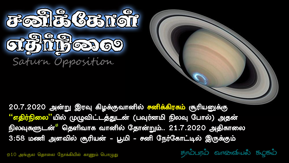 வானியல் தொடர்பான உலகத்தின் அதிகாரபூர்வ அமைப்பான "சர்வதேச வானியல் சம்மேளனம்" ( International Astronomical Union IAU ) தாம்பரம் வானியல் கழகத்தை அங்கீகரித்து அதனின் இணையத்தில் குழுநடவடிக்கை பகுதியில் வெளியிட்டு எம்மை கௌரவப்படுத்தியுள்ளது என்பதை இங்கு பணிவுடன் அறிவிக்கிறோம் 2019| 2018 | 2017 | 2016 Events | 2015 Events முந்திய 2015ம் ஆண்டு நிகழ்வுகள் பற்றிய தொகுப்பு பக்கம் Total Solar Eclipse, 14 December 2020, Not Visivle at chennai Saturn Opposition 21 July 2020 03:58 IST, Chennai, India c/2020 f3 neowise வால் நட்சத்திரம் காணத்தவறாதீர்கள் ஜூலை 11-19. 2020 Aldebaran Conjunction with Venus (Very Rare in next 3 decades) Aldebaran amd Venus conjunction Data upto year 2050 PDF Jupiter Opposition 14 July 2020 13:28 IST, Chennai, India